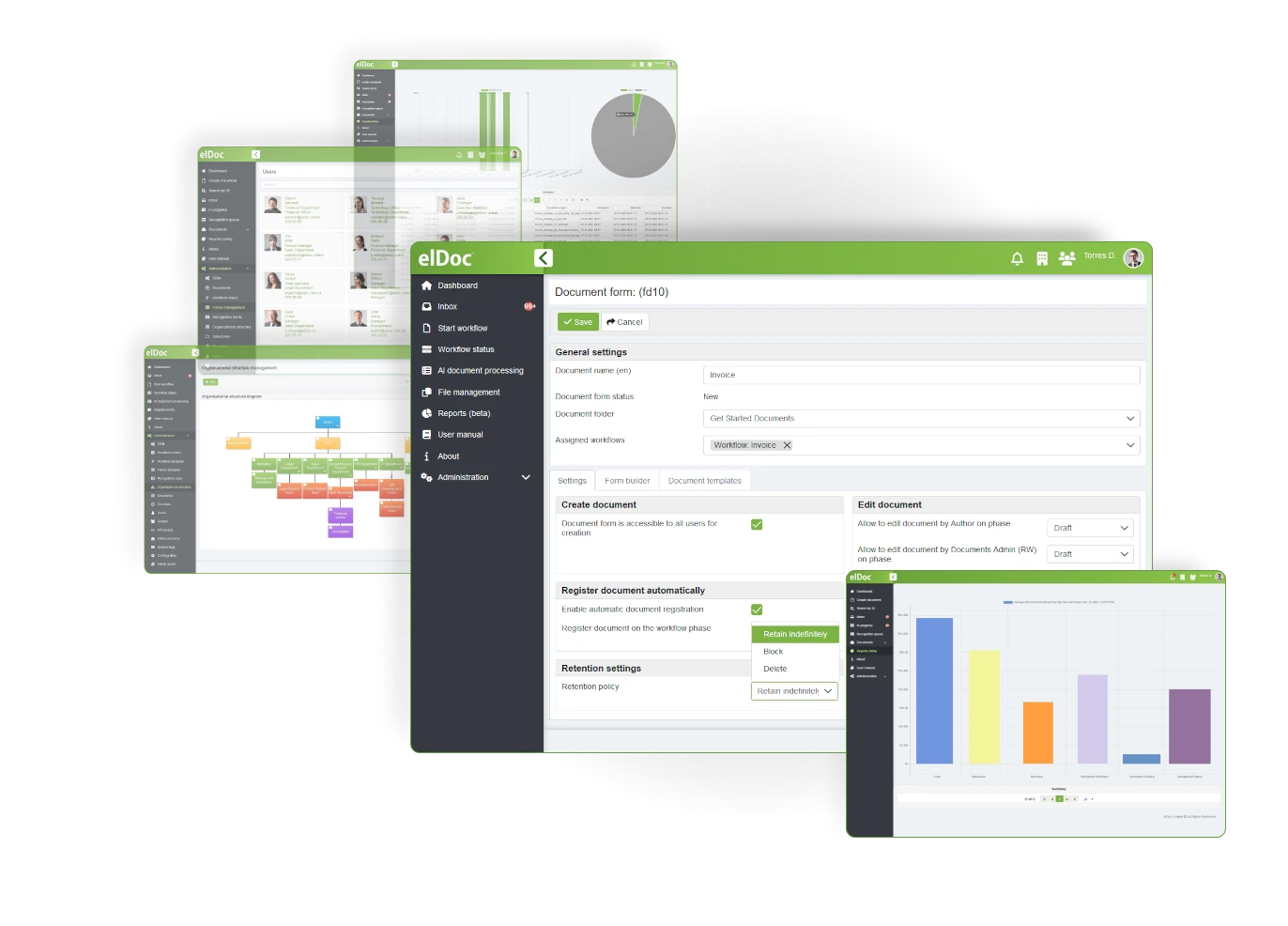 Seamlessly manage retention periods, establish legal holds, and confidently meet regulatory requirements. With elDoc, you have the power to define retention policies that align with your company’s specific needs, ensuring that documents are retained for the required duration and disposed appropriately. Gain confidence in your document management practices and reduce the risk of non-compliance with elDoc’s intuitive and customizable retention feature!