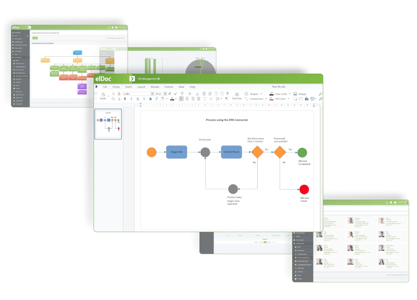 With elDoc’s drawing functionality, you can effortlessly create detailed diagrams and visual representations without the need for additional licenses like Visio. Easily map out organizational structures, design process flows, and build intricate diagrams to bring your concepts to life. elDoc’s intuitive tools and flexible options ensure clear and precise visualization and communication of complex ideas.