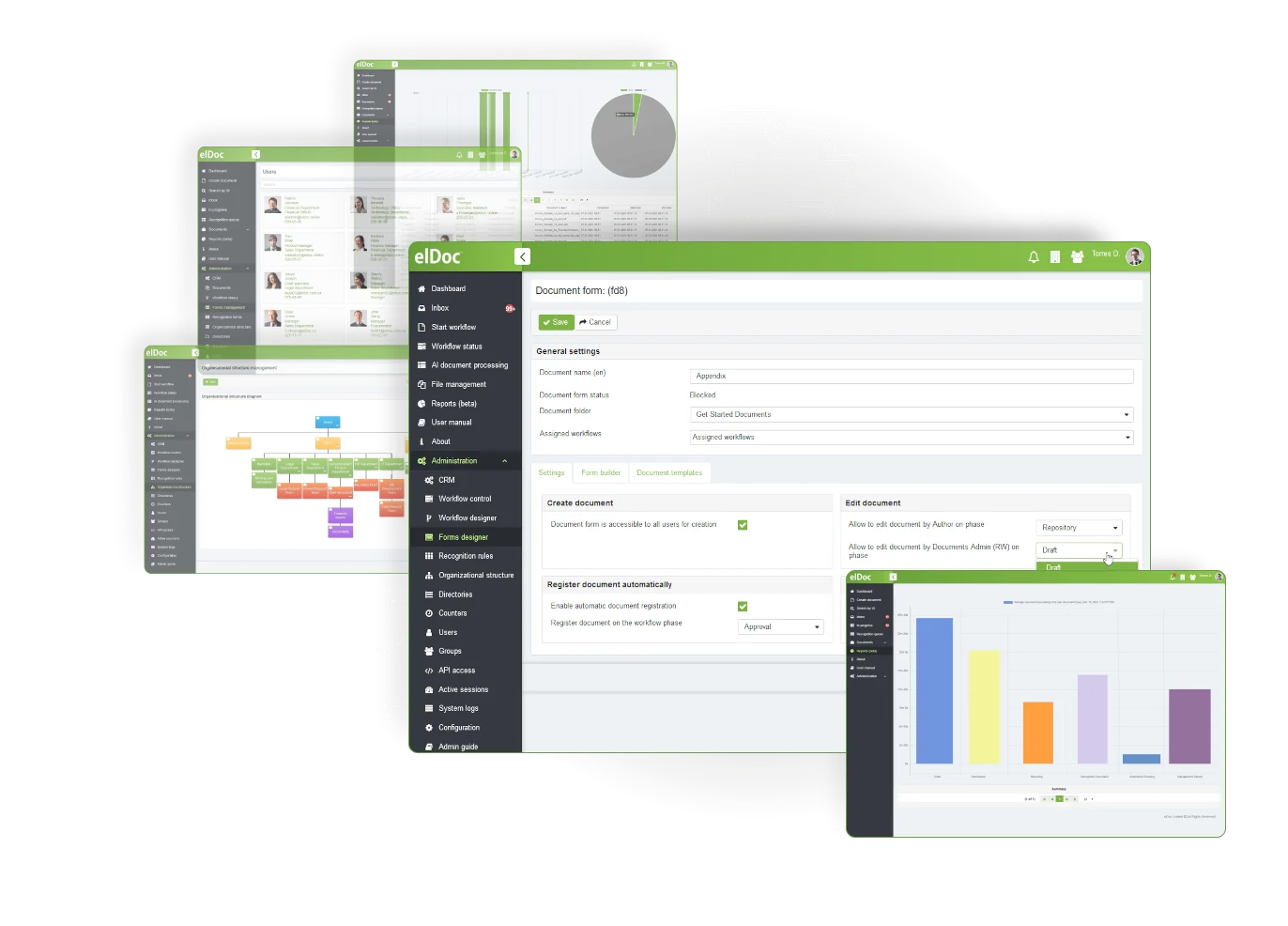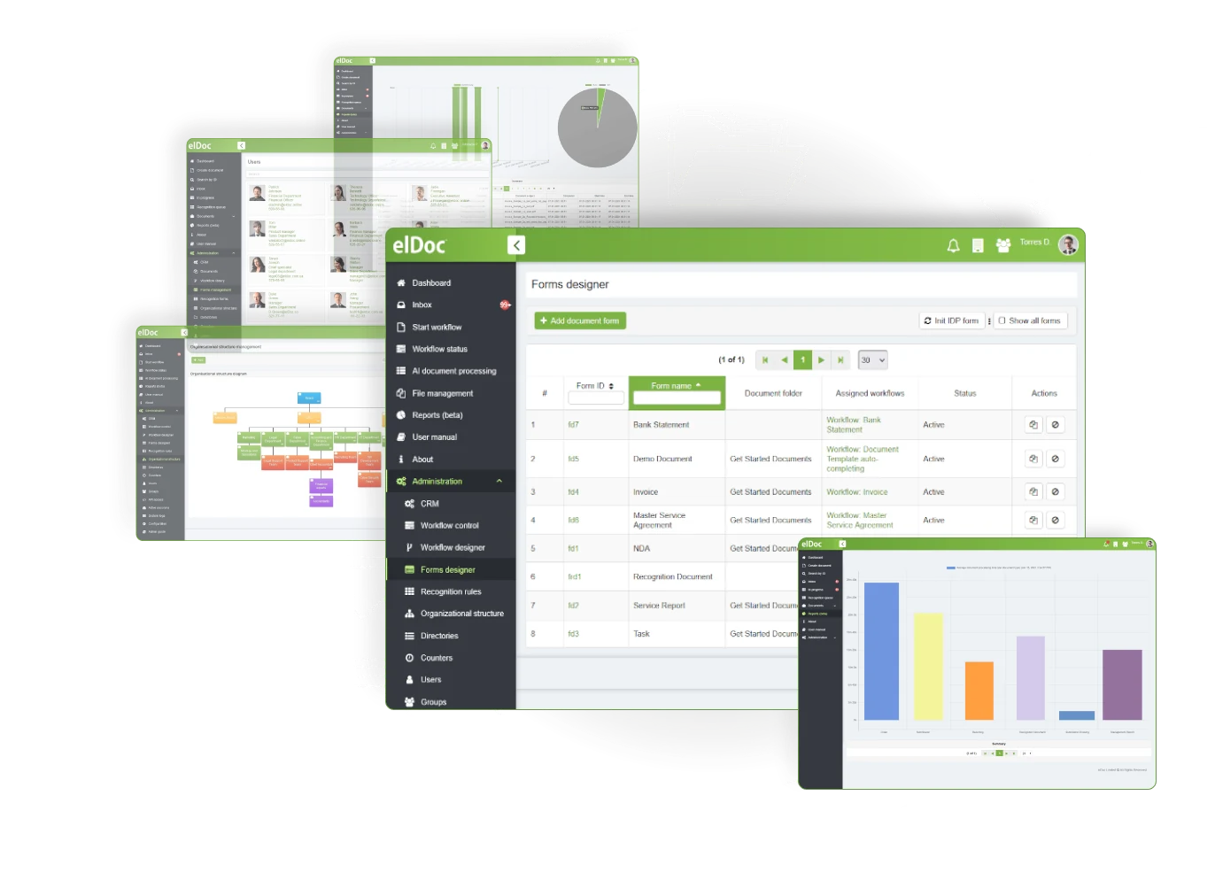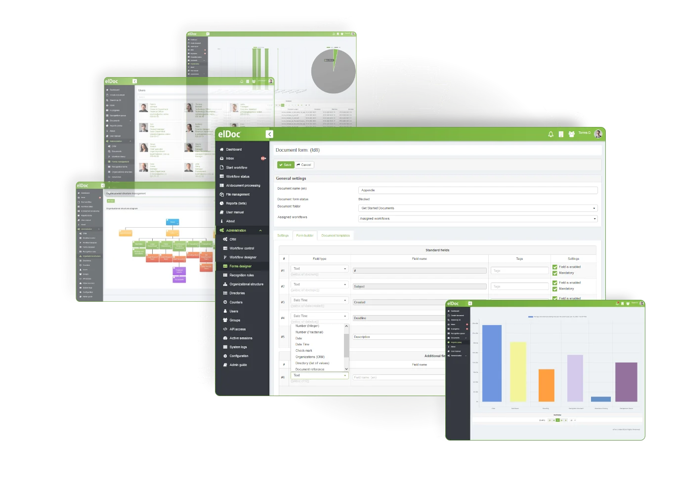 Design your custom document forms of any complexity and link created forms to your document workflows without writing a single line of code. Empower anyone in your organization to design document forms with user-friendly, intuitive and multi-featured elDoc Form Designer!
